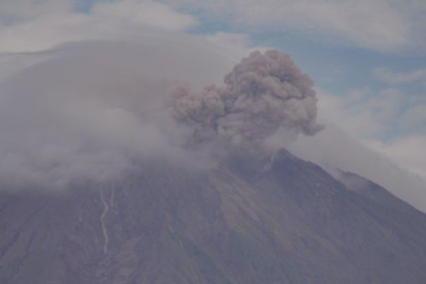 Gunung Semeru yang berada di perbatasan Kabupaten Lumajang dan Malang, Jawa Timur kembali erupsi disertai letusan awan panas sejauh 3,5 kilometer pada Minggu pagi.
