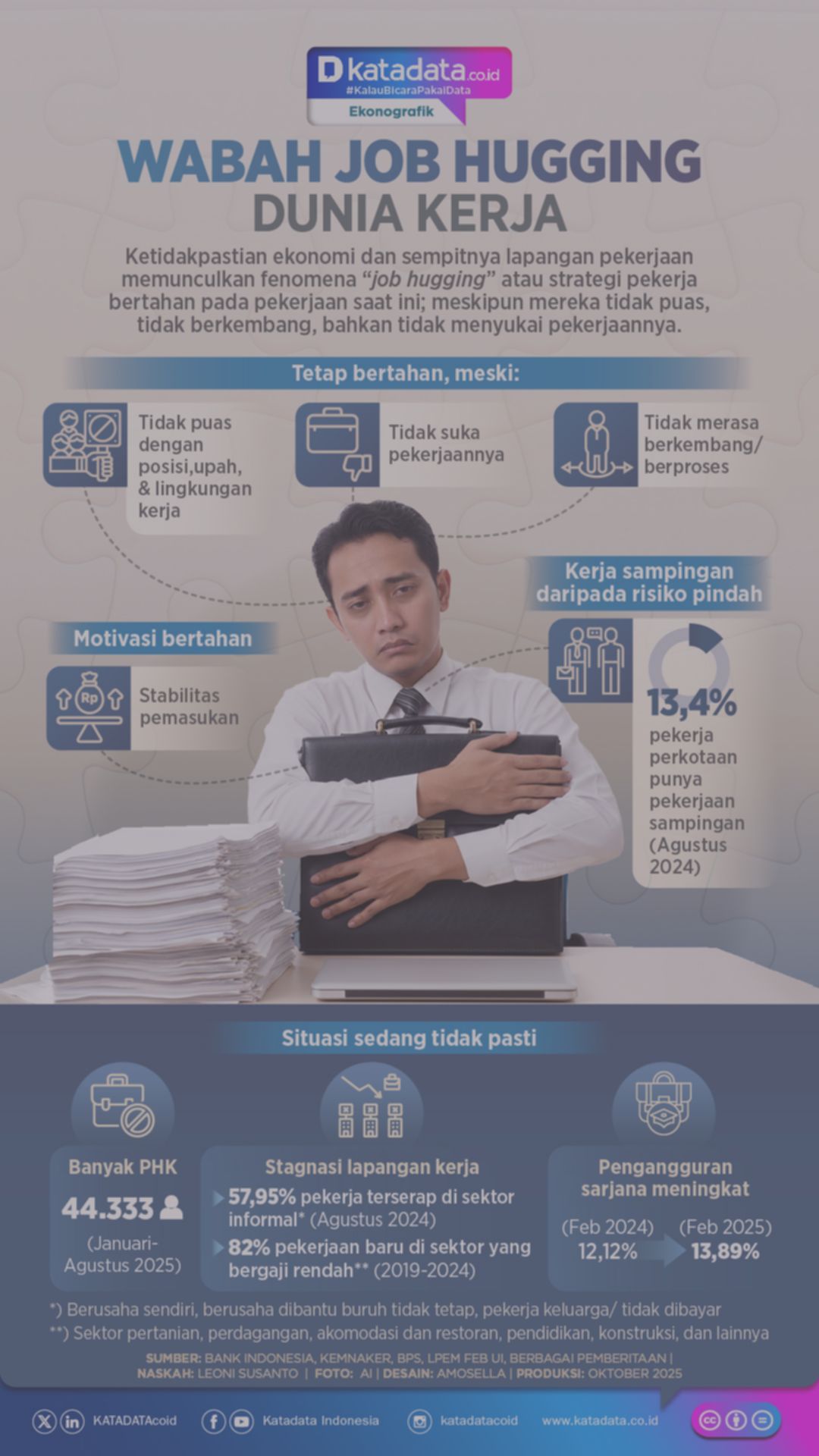 Situasi ekonomi yang tidak menentu, di tengah stagnasi pendapatan dan kenaikan harga, menyebabkan pekerja memilih bertahan dengan pekerjaannya alias ‘job hugging’..