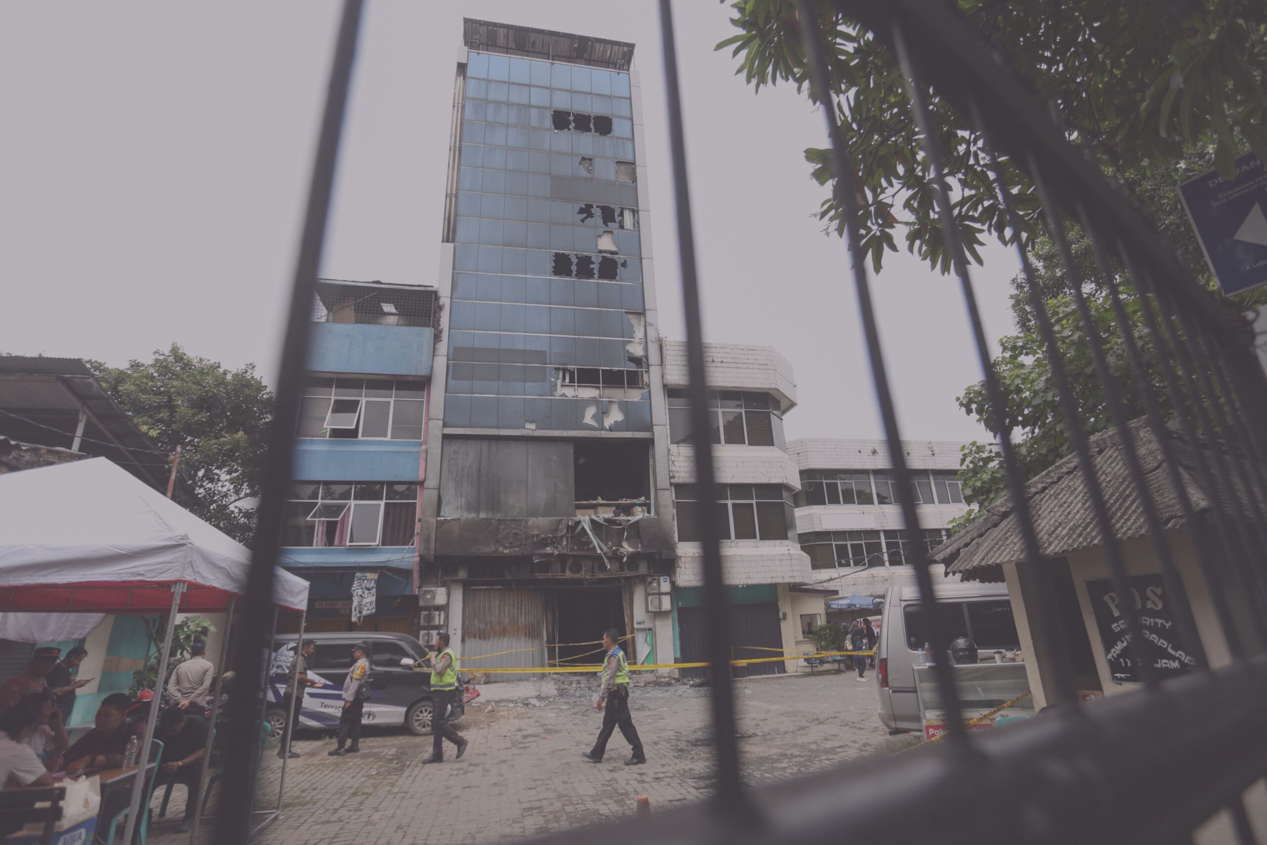 Bagian dalam gedung ruko PT Terra Drone Indonesia di Jalan Letnan Jenderal Suprapto, Cempaka Baru, Kemayoran, Jakarta Pusat, hangus terbakar usai terjadi peristiwa kebakaran pada Selasa (9/12).