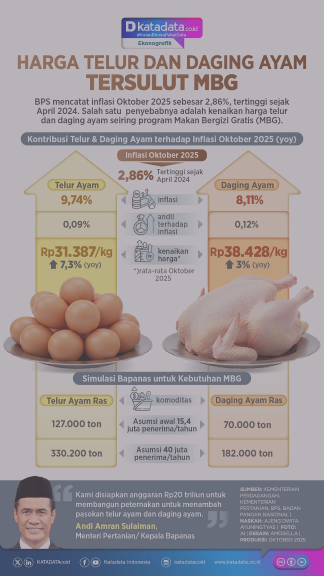 Pemerintah menyiapkan dana Rp20 triliun untuk membangun peternakan ayam guna memenuhi permintaan telur dan daging seiring program MBG.