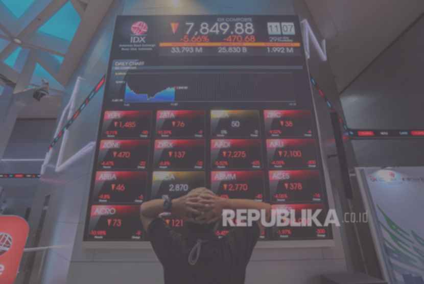 Indeks Harga Saham Gabungan atau IHSG rontok 4,32% atau 343,19 poin ke level 7.596 pada perdagangan sesi pertama, Rabu (4/3). Rontoknya indeks terjadi di tengah gejolak ekonomi imbas geopolitik dunia.