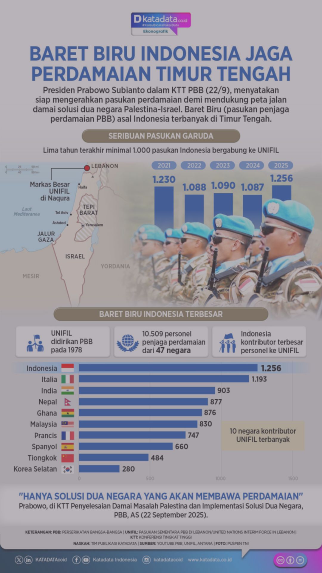 Baret Biru, yang merupakan pasukan perdamaian TNI di Timur Tengah UNIFIL, siap dikerahkan untuk mengawal perdamaian di Palestina lewat “solusi dua negara.”