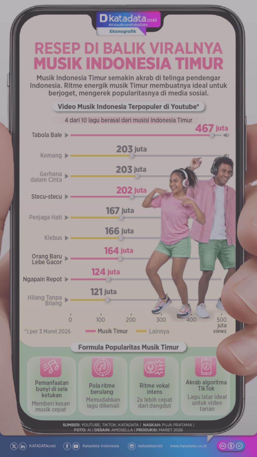 Musik Indonesia Timur sedang meledak dan mendominasi tangga lagu YouTube dan TikTok berkat formula ritmis yang energik, dengan beberapa lagu mencapai ratusan juta pendengar.